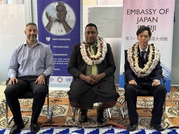2025年9月24日、道井緑一郎駐フィジー共和国日本国特命全権大使は、フィジー農村・海洋開発・国家災害リスク管理省の副事務次官であるミティエリ・カマ氏に対し、早期警報システムの機材を引き渡しました。本引渡式には、国際移住機関(IOM)人道支援プログラムマネジャーのハッサン・エル・マアルーフィ氏も出席しました。