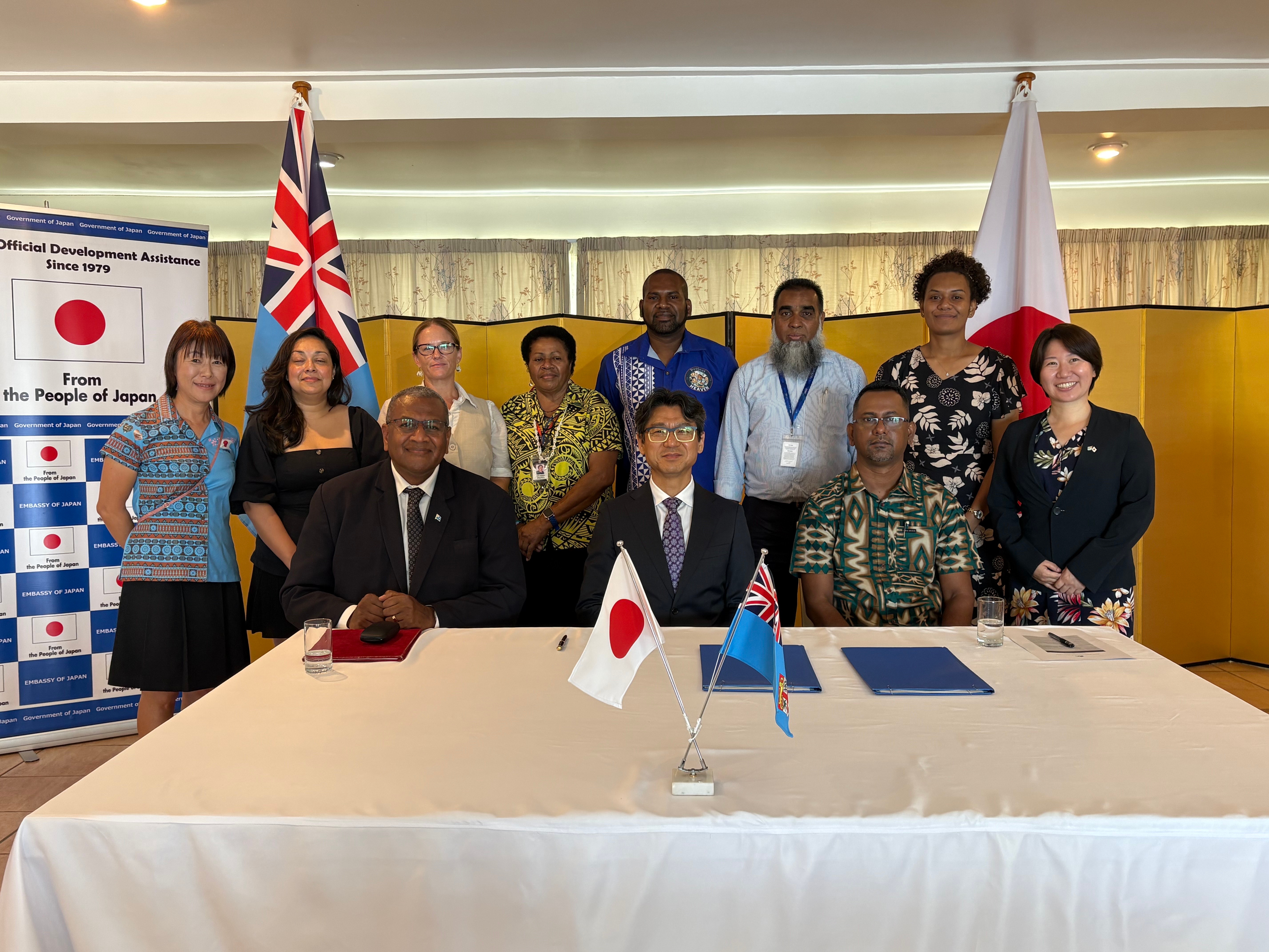 令和8年1月23日、ペニオニ・ラヴナワ保健医療サービス副大臣立ち合いの下、対フィジー草の根無償資金協力「フィジー巡回視聴覚検査車両整備計画」の署名式が行われました。署名式では、在フィジー日本国大使館参事官・次席の髙田勇深とプロジェクト・ヘブン・トラストのジェネラルマネージャーであるニレシュ・レディ氏が、贈与契約(G/C)に署名しました。