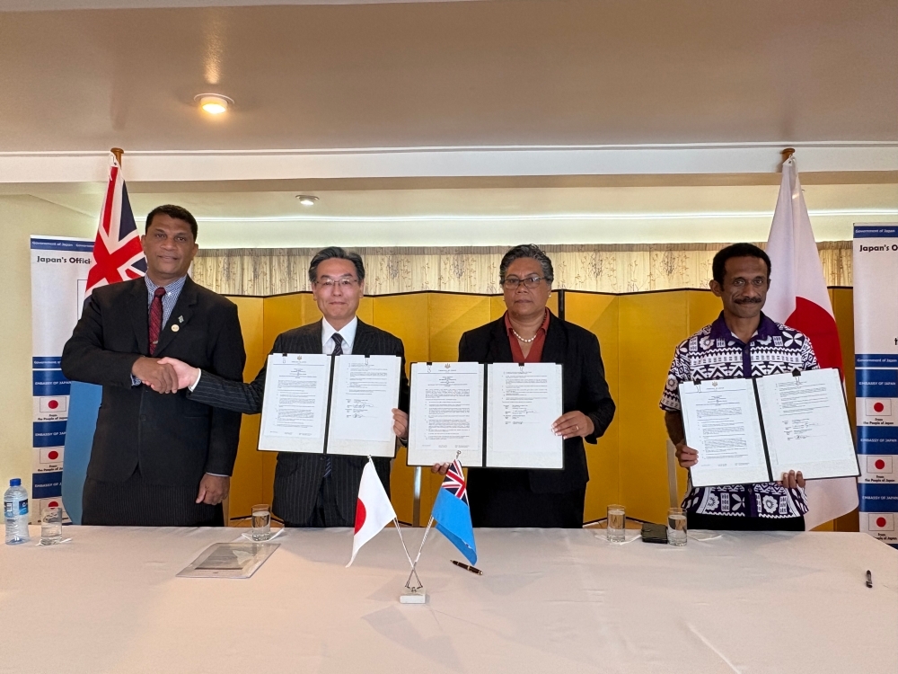 対フィジー草の根無償資金協力「フィジー巡回視聴覚検査車両整備計画」贈与契約(G/C)署名式(2026年1月23日)