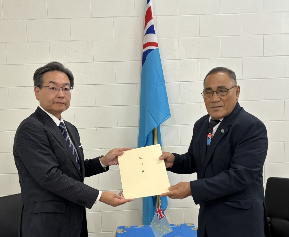 田島大使によるトフィンガ・ヴァエヴァル・ファラニ総督への信任状捧呈(2026年3月31日)
